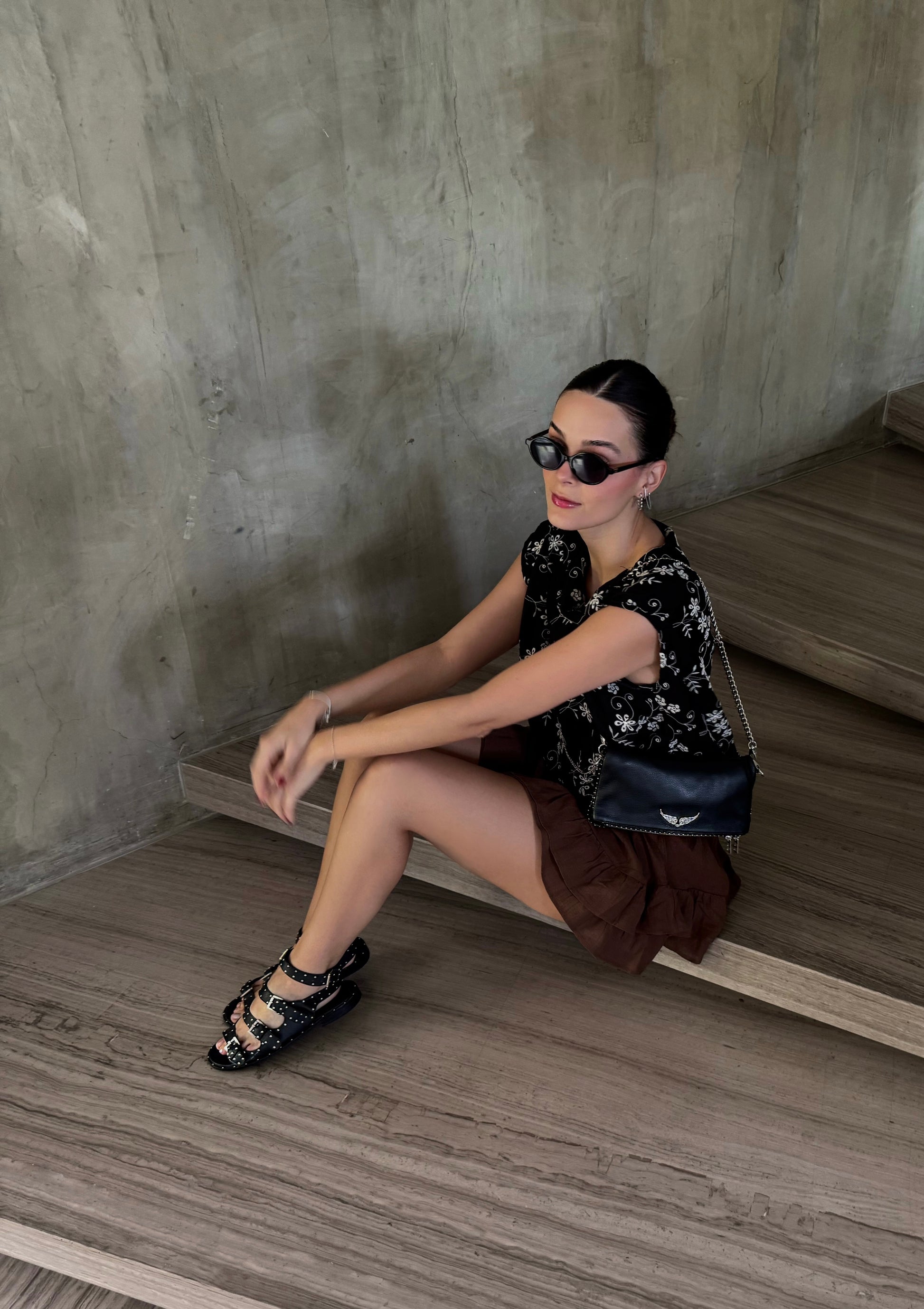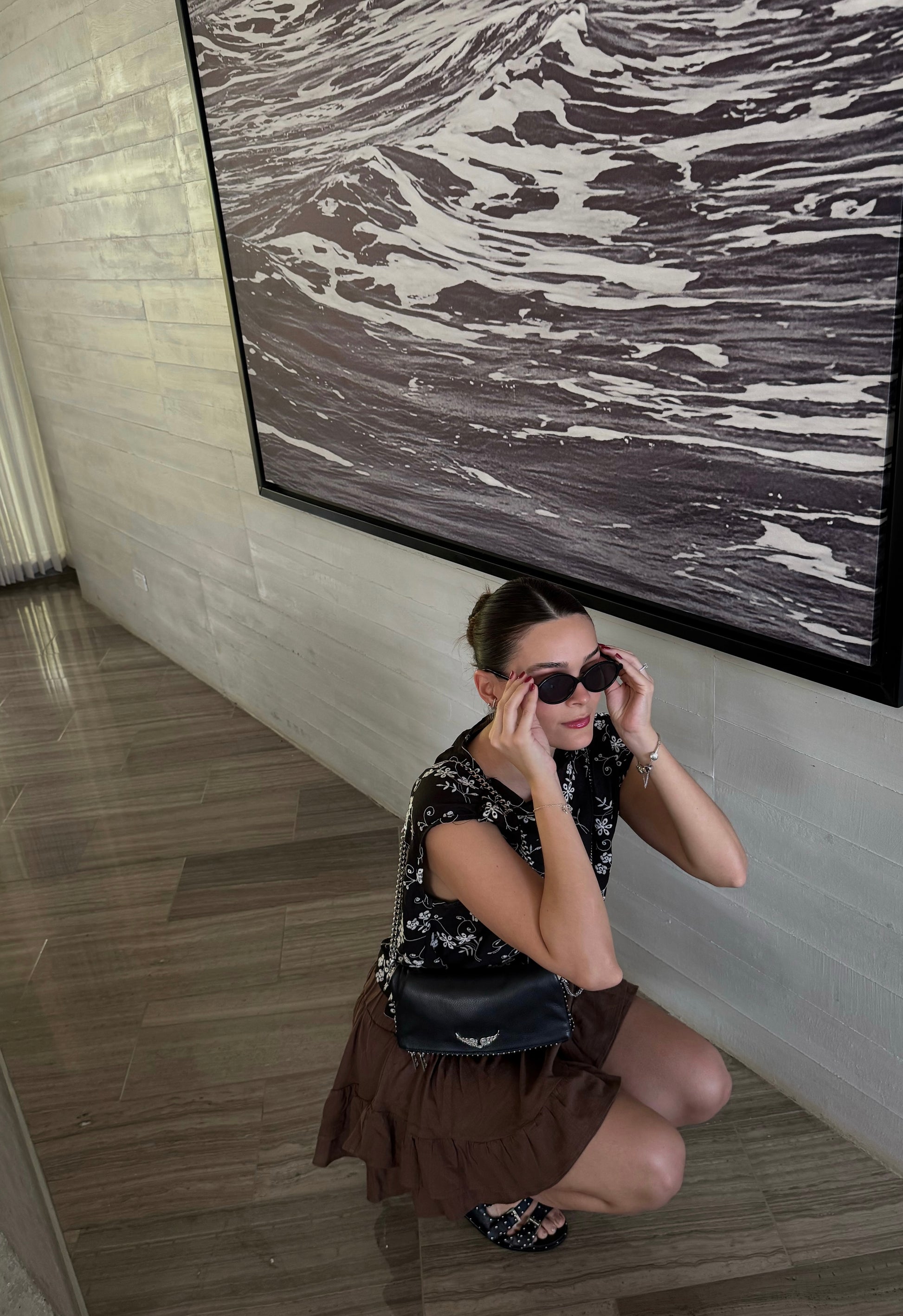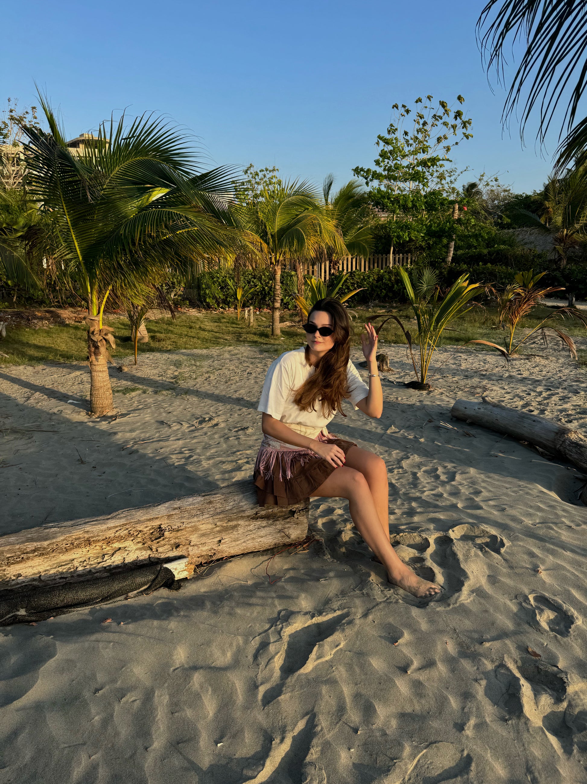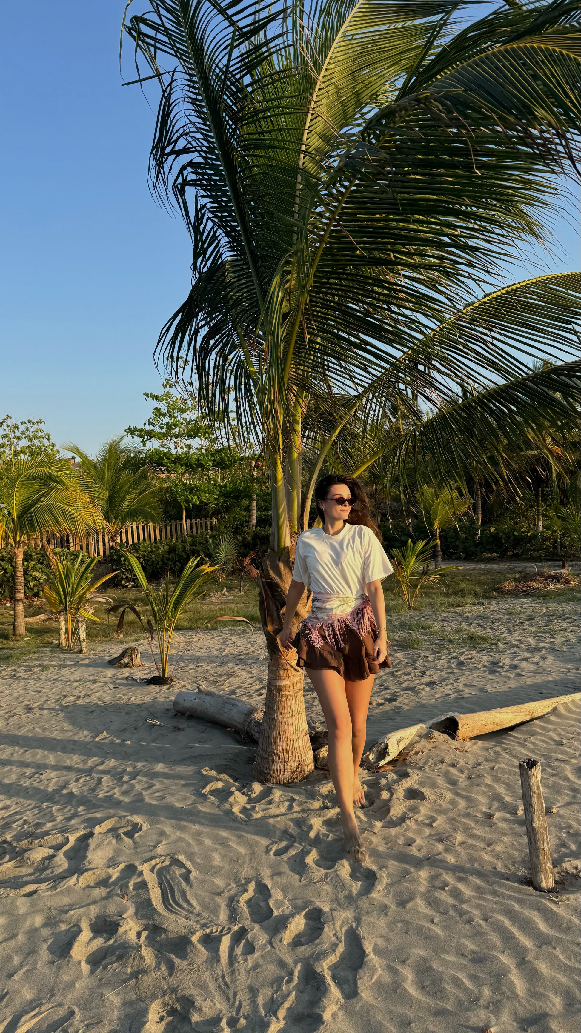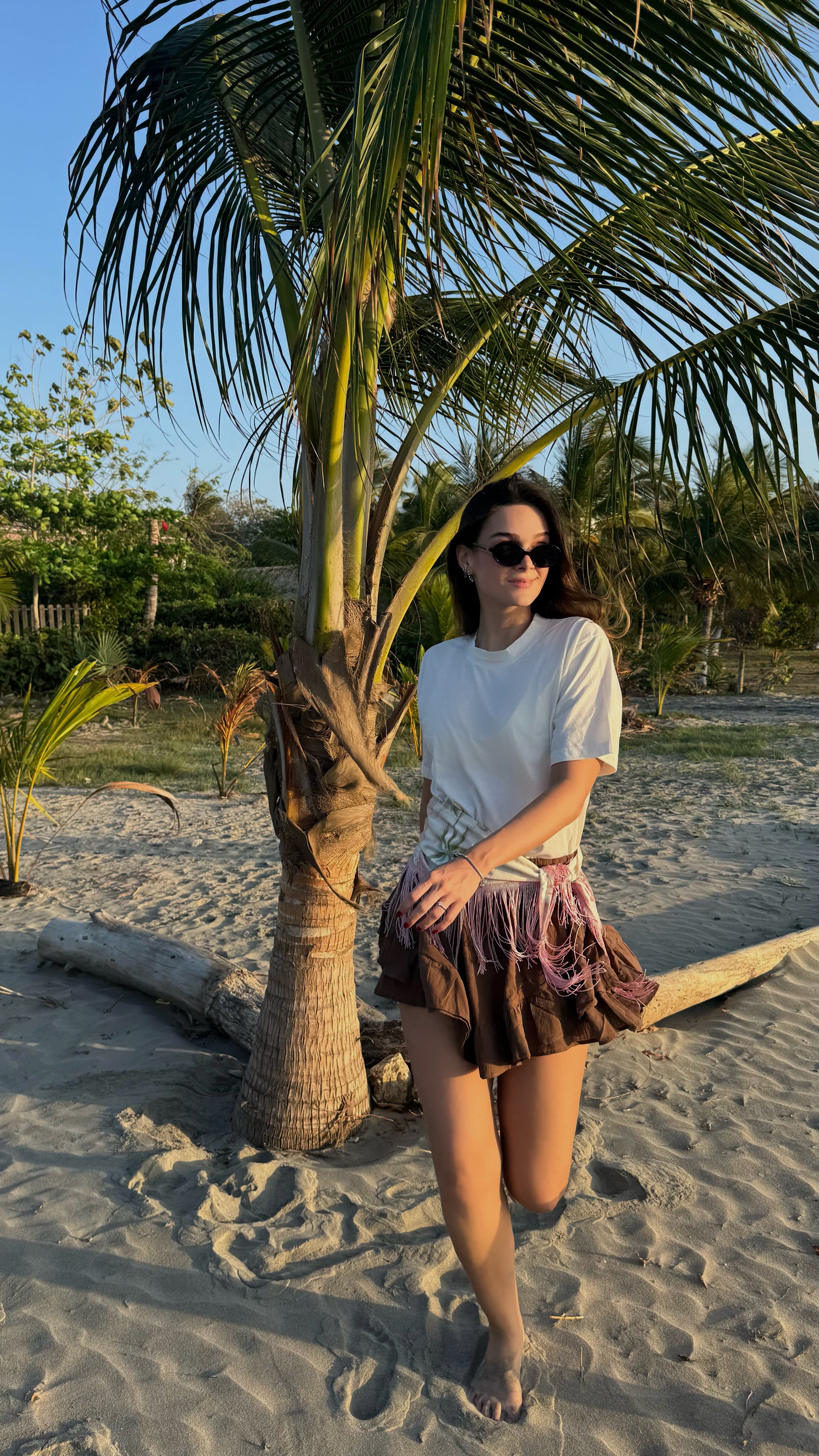 La Coco Coast Mini Skirt captura la esencia de los atardeceres frente al mar. Confeccionada en lino color café oscuro, su silueta con vuelos aporta movimiento y una elegancia relajada que se siente natural y effortless.