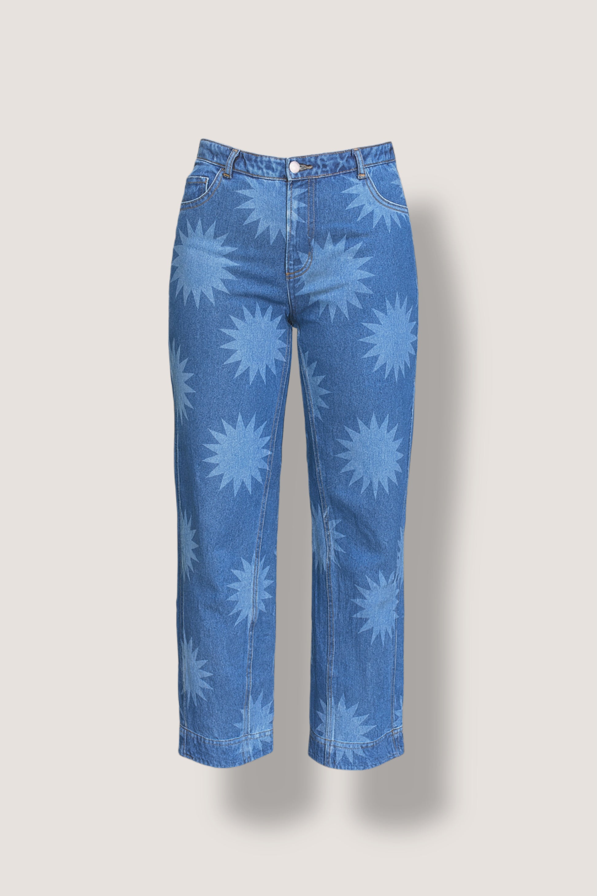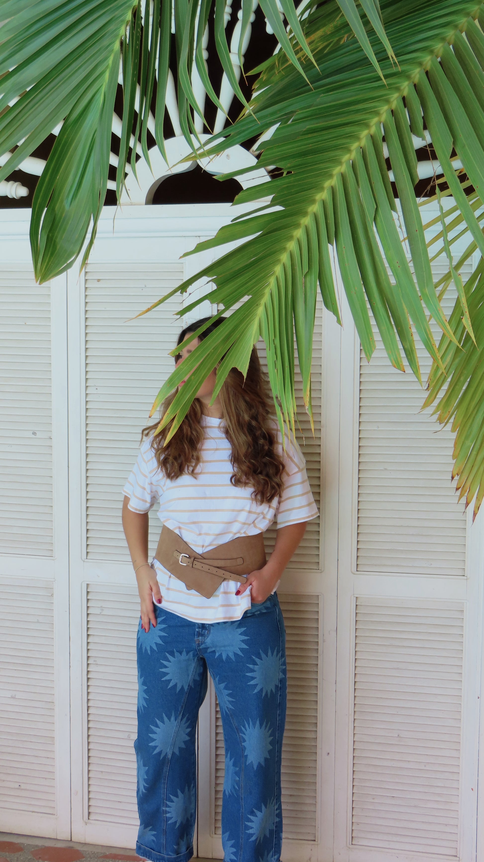 Su estampado de soles es un tributo a esa luz que lo envuelve todo, a la creatividad espontánea de la costa y al estilo auténtico que define a Marigabi.